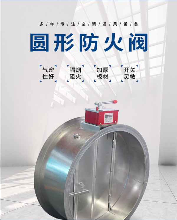 圓形防火閥是一種記憶熔合金的溫度控制,利用重力作用和彈簧機構(gòu)的作用關(guān)閉的閥門形式。新型產(chǎn)品中亦有利用記憶合金產(chǎn)生形變使閥門關(guān)閉的。