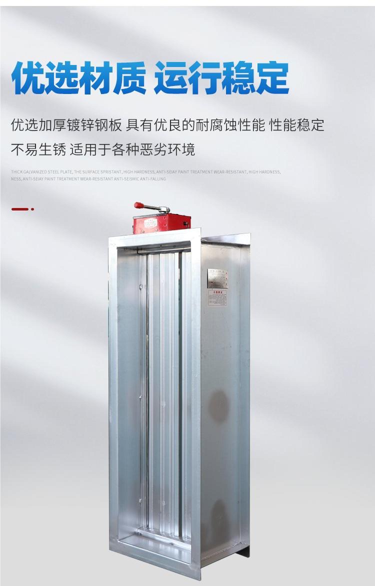 排煙防火閥是一種消防部件,一般安裝在機械排煙系統(tǒng)的管道上,平時呈開啟狀態(tài),發(fā)生火災(zāi)時開啟排煙,當排煙管道內(nèi)煙氣溫度達到280度時關(guān)閉,并在一定時間內(nèi)滿足漏煙量和耐火完整性要求,起隔煙阻火作用。主要材質(zhì):碳素鋼、鍍鋅板、不銹鋼。
