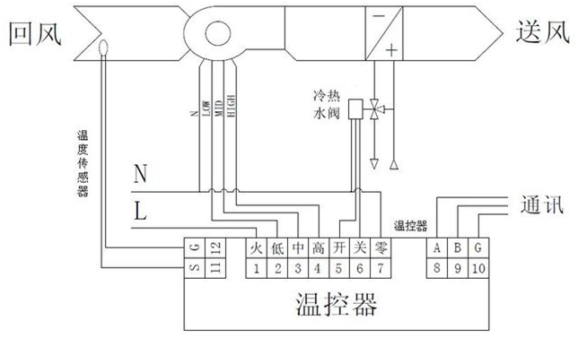 電加熱雙管系統(tǒng)由溫控器、風(fēng)機(jī)盤管、電動閥、電加熱器和接觸器等組成。