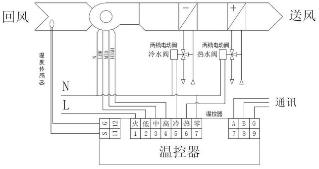 雙管冷熱組合系統(tǒng)由溫度控制器、風(fēng)機(jī)盤管和電動閥組成。。根據(jù)不同的應(yīng)用系統(tǒng),電動閥有雙通閥和三通閥。。當(dāng)系統(tǒng)中未設(shè)置旁路時(shí),選擇雙通閥;當(dāng)系統(tǒng)設(shè)置有旁路時(shí),應(yīng)用三通,冷水/熱水在正常制冷或供熱過程中通過盤管回流,冷水/熱水通過旁路回流,并且當(dāng)不需要制冷或供熱時(shí),不流經(jīng)盤管系統(tǒng)。電動閥根據(jù)不同的控制原理分為二線閥和三線閥。